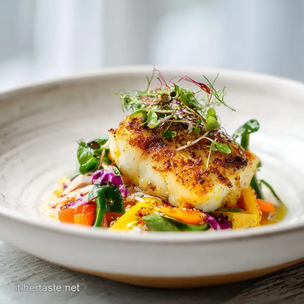 Consiglio dello Chef: Per un tocco di classe, metti i piatti di servizio in frigorifero per 10 minuti prima di impiattare. Il contrasto termico tra il piatto freddo e il pesce a temperatura ambiente esalterà la percezione della freschezza.
