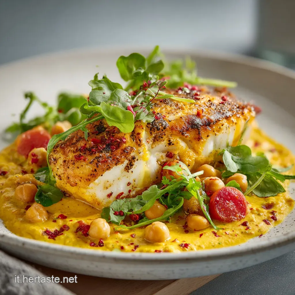 Senti questo sfrigolio? È la pelle del pesce che, a contatto con l'olio rovente, si trasforma in una crosta fragrante capace di frantumarsi sotto i rebbi della forchetta. Baccalà con crema di ceci: una ricetta raffinata che vi conquisterà al primo assaggio.