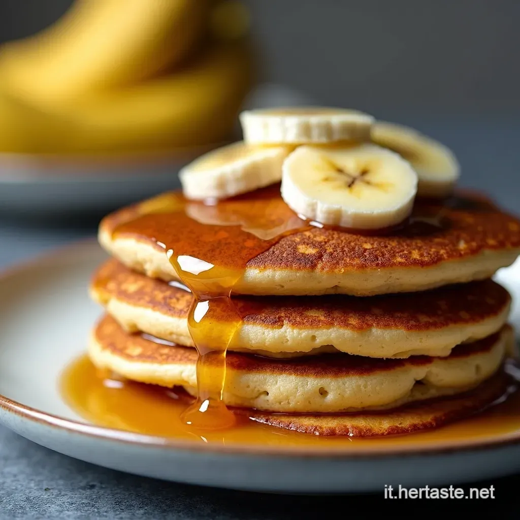 - Impiattamento che spacca: Dimentica la pila disordinata! Sovrapponi i tuoi pancake alla banana in modo elegante, magari alternando con fettine di banana fresca. Un tocco di zucchero a velo? Assolutamente sì!